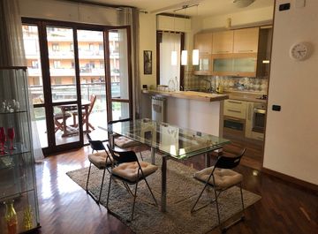 Composto da ampio soggiorno, camera matrimoniale, 2 bagni di cui uno con doppi servizi e box doccia, cucina, ampio terrazzo (20 mq) e un grande parcheggio interno privato.